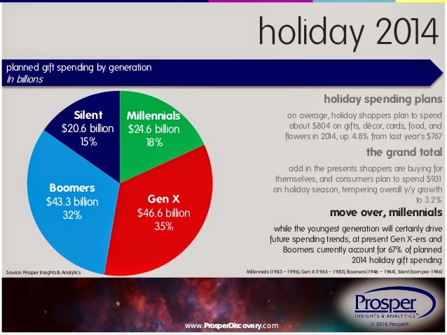 While Millennials are often chased, they are projected to account for just 18% of all 2014 holiday spending.